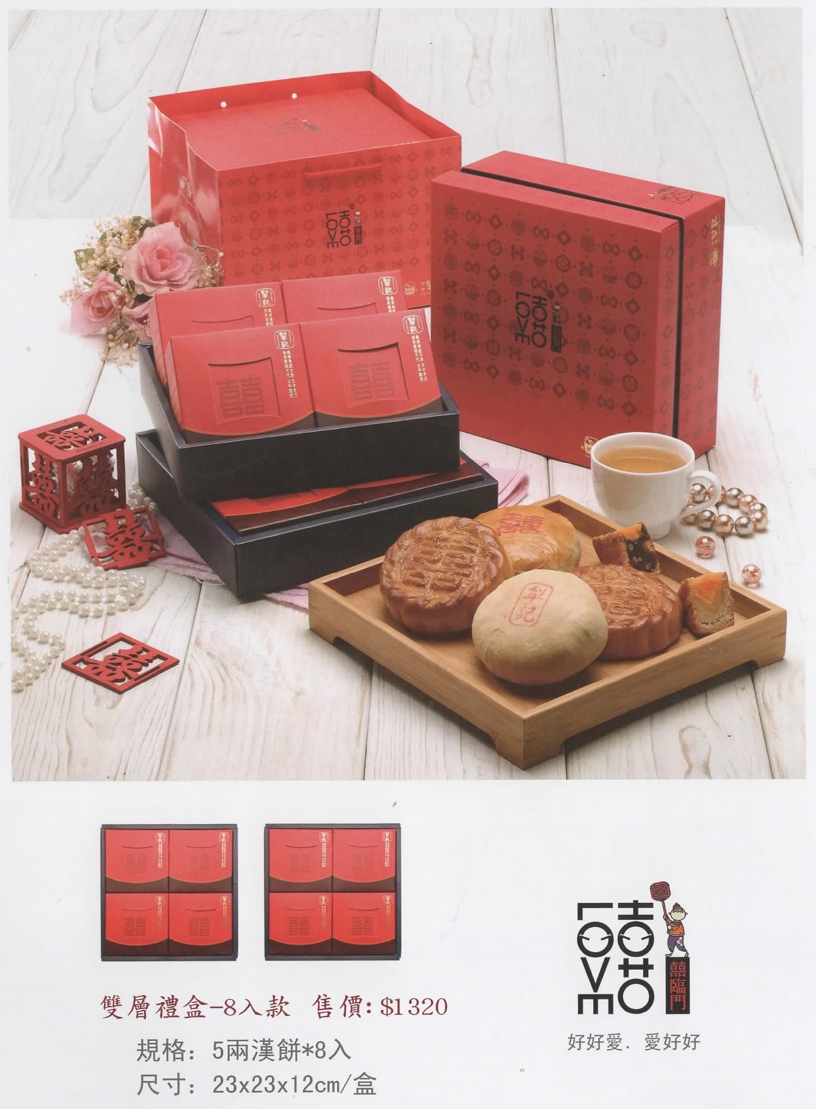 ●伍仁蛋黃(葷食) - 杏仁角、松子仁、瓜子仁、核桃、芝麻、麵粉、蛋黃、進口奶油、雞蛋、豬肉、砂糖、轉化糖漿(砂糖、水、麥芽糖漿(麥芽二糖、麥芽三糖以上寡糖、水、葡萄糖)、焦糖色素、碳酸氫鈉、檸檬酸)、食鹽